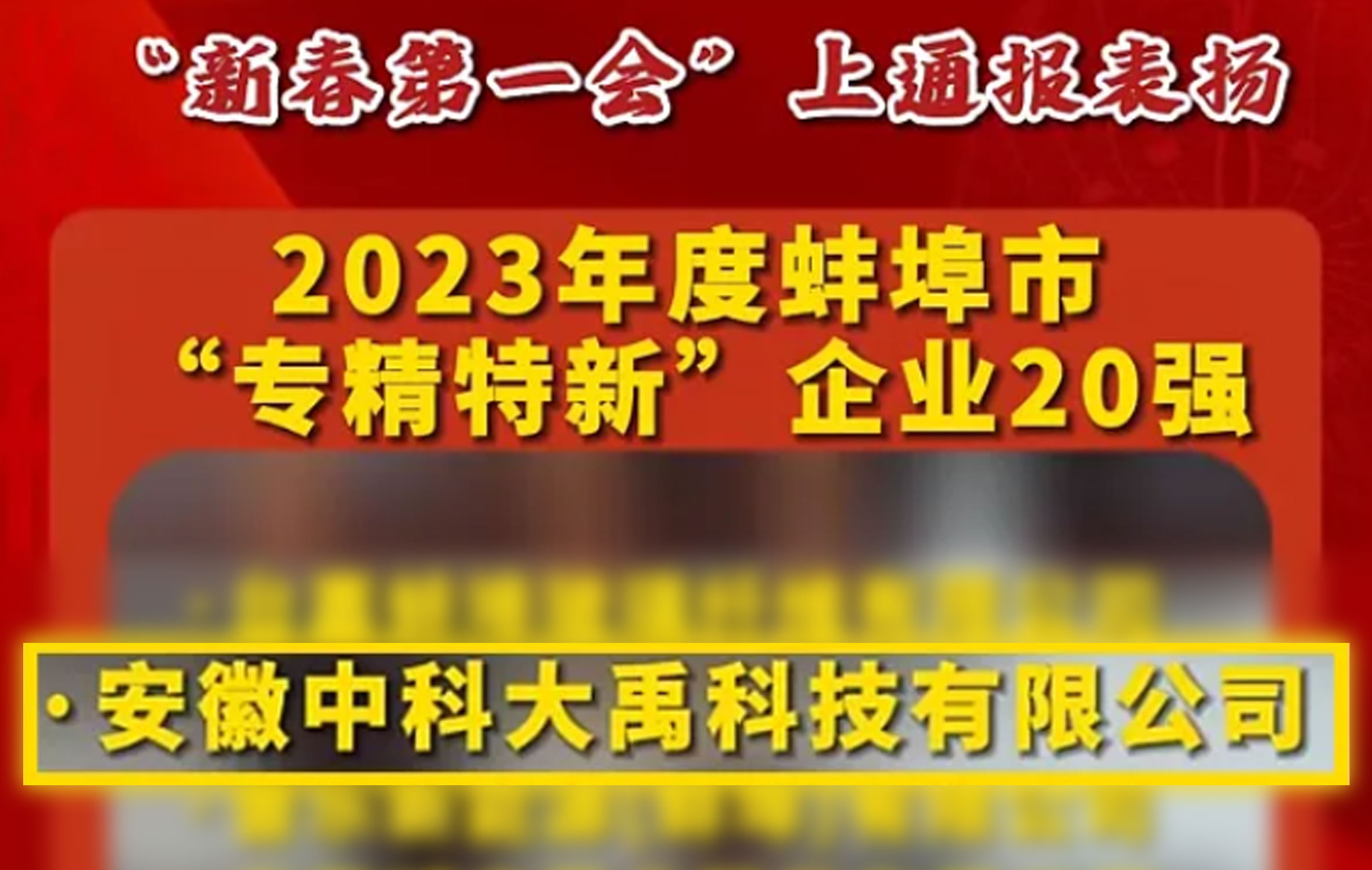 中科大禹榮登2023年度蚌埠市“專精特新”企業(yè)20強(qiáng)